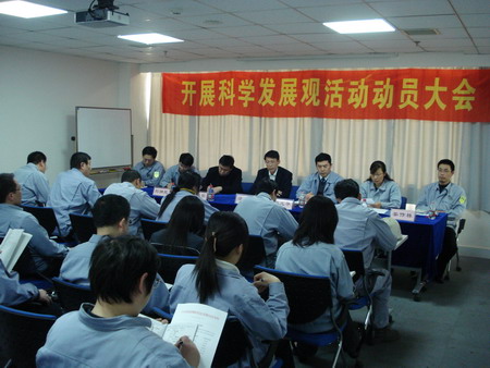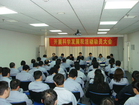 動員大會由總經(jīng)理孫龍平同志主持。會上,首先宣讀了《關(guān)于成立公司學習實踐科學發(fā)展觀領(lǐng)導小組的通知》,荏原博泵黨總支副書記姜作棟同志宣讀了公司《深入學習實踐科學發(fā)展觀活動的實施方案》,明確了各階段的任務要求和具體責任人,并公布了公司信箱、意見箱,鼓勵廣大黨員、群眾對公司開展好學習實踐科學發(fā)展觀活動獻計獻策。